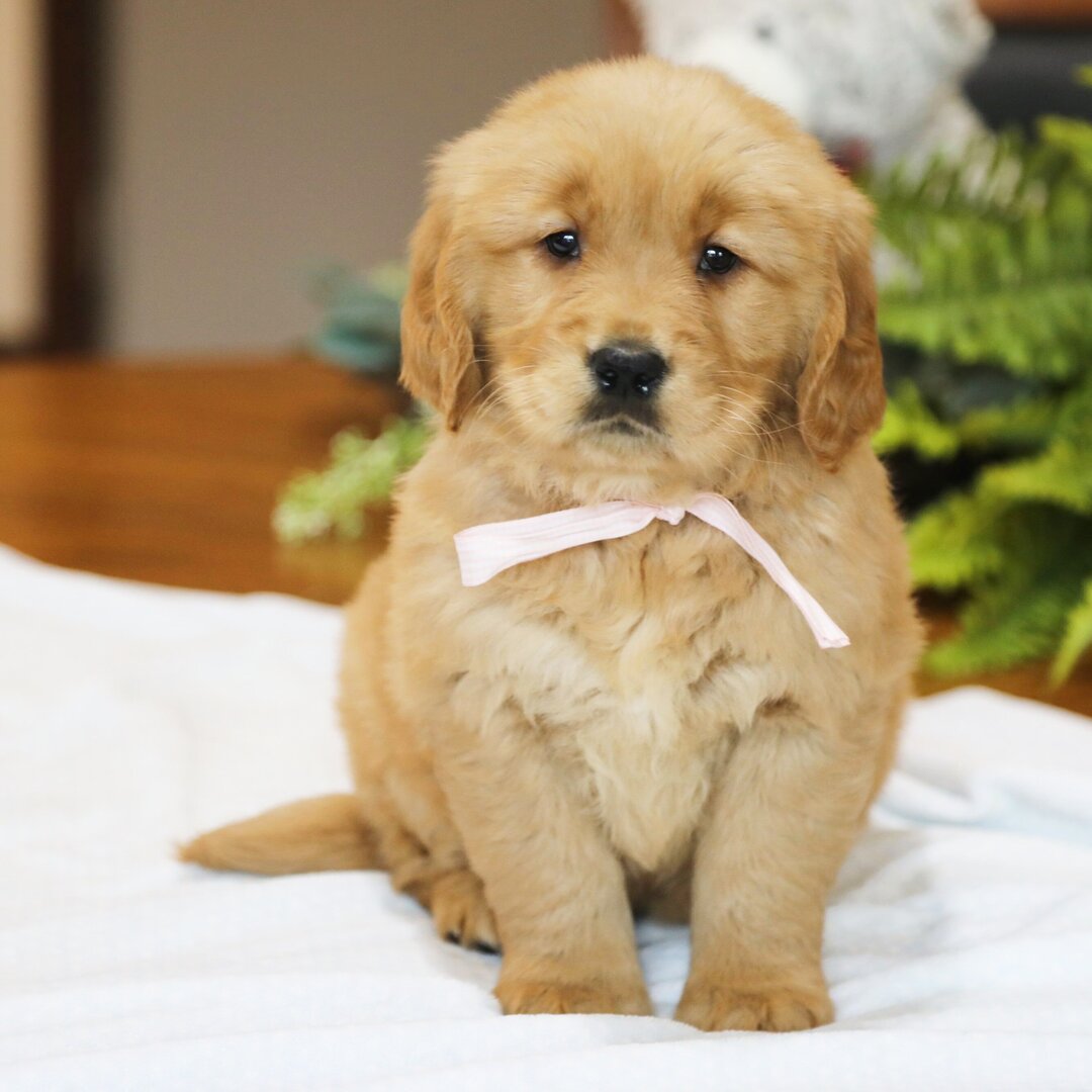 Hi, I'm Millie! I'm a female Golden Retriever with a beautiful golden coat. I'll soon be ready to go home to my forever family. When I reach my adult size, I should weigh between 45–75 lbs. I'm APRI registered. My puppy love is ready to brighten your every day.